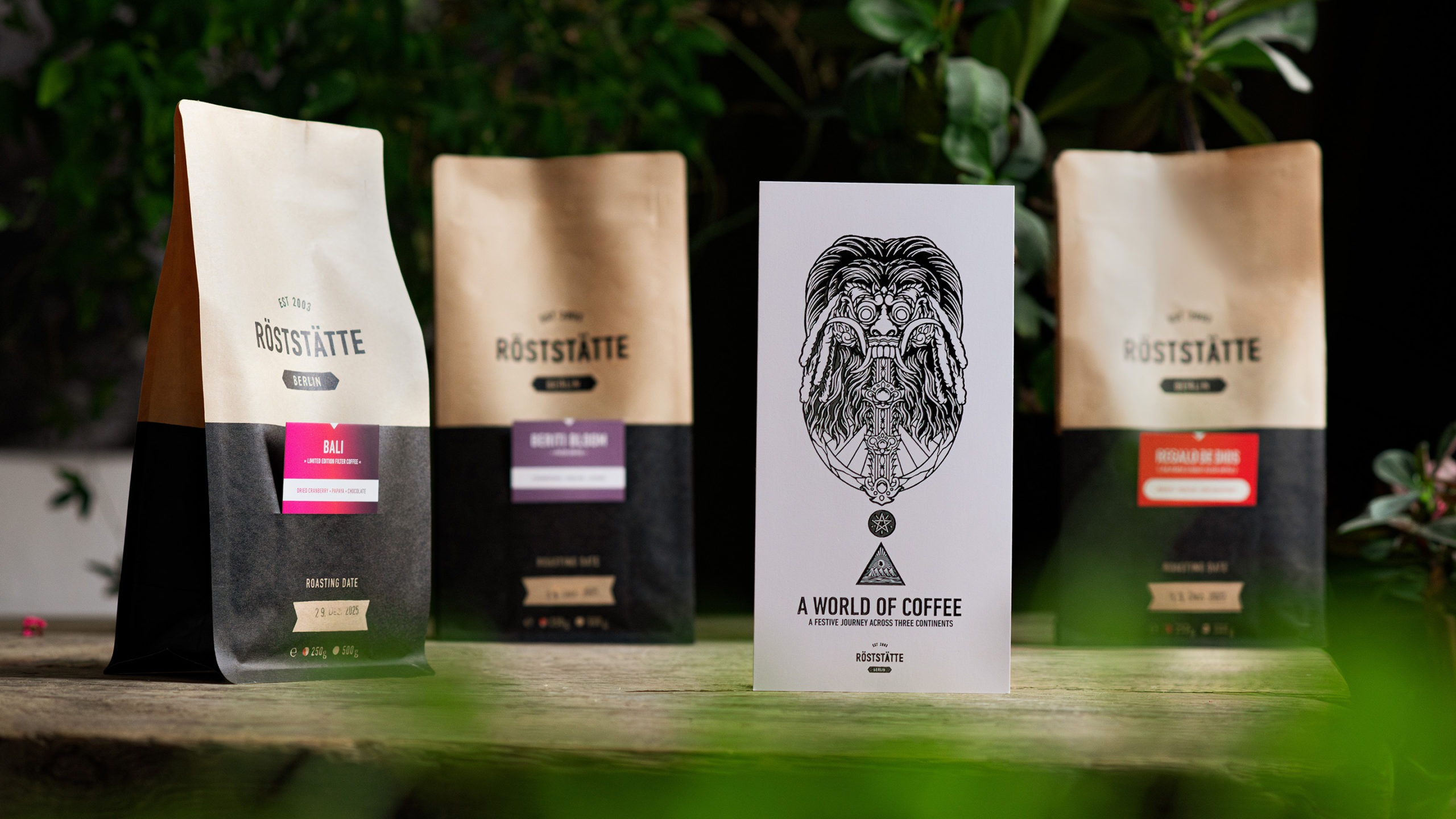 Our tasting sets consist of 3 × 250 g coffee beans, varying seasonally.